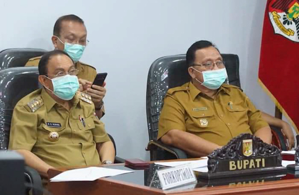 MINAHASA, SULUTNEWSTV.COM – Bupati Minahasa DR Ir. Royke Octavian Roring, MSi bersama Wakil Bupati DR. Robby Dondokambey,SSi, MM ikut dalam kegiatan Rapat Koordinasi Pengawasan Intern Keuangan dan Pembangunan Tingkat Provinsi Sulawesi Utara yang digelar di Ruang Mapalus Kantor Gubernur Sulawesi Utara, Selasa (30/3/21).