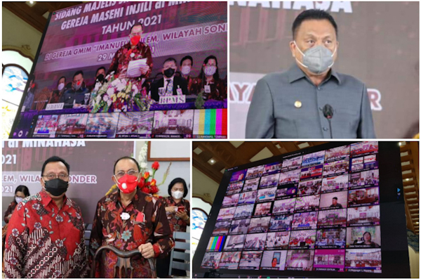 Minahasa – Setelah berlangsung selama sehari penuh setelah di buka oleh Ketua Sinode GMIM Bapak Dr. Hein Arina dan diresmikan pelaksanaannya oleh Gubernur Sulawesi Utara Bapal Olly Dondokambey, SE, akhirnya ditutup secara resmi oleh Ketua Sinode GMIM Pdt. DR. Hein Arina yang diawali demgan Ibadah secara Virtual dengan seluruh peserta di 57 Cluster.