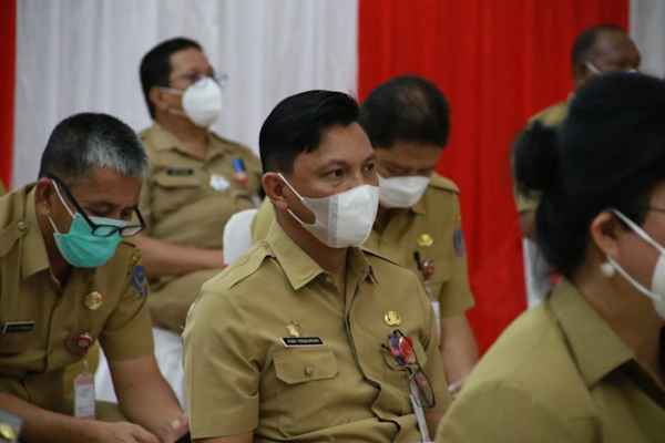 Mewakili Wali kota Tomohon Caroll J A Senduk, SH dan Wakil Walikota Tomohon Wenny Lumentut, SE., Penjabat Sekretaris Daerah Kota Tomohon Jemmy Ringkuangan, A P, M.Si mengikuti pertemuan dan mendengarkan arahan dari Menteri Pendayagunaan Aparatur Negara dan Reformasi Birokrasi (PANRB) Tjahjo Kumolo yang melakukan kunjungan kerja di Manado, Sulawesi Utara,