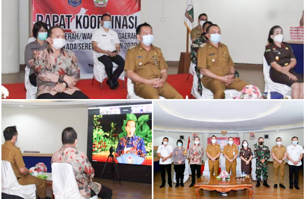 SULUTNEWSTV.com, TOMOHON – Walikota Tomohon Caroll J.A Senduk, SH didampingi Wakil Walikota Wenny Lumentut, SE mengikuti Rapat Koordinasi Kepala Daerah Hasil Pilkada Serentak Tahun 2020 yang di gelar secara Vidcon bertempat di Command Center Kota Tomohon, (14/4/21).