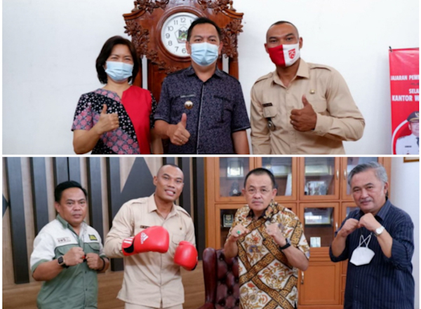 Wali kota dan Wakil Wali kota Tomohon memberikan motivasi dan semangat kepada Atlit Tinju Toar Sompotan saat berdialog bersama di ruang kerja Walikota dan Wakil Walikota pada Jumat, (16/4/21).