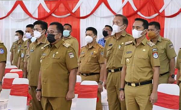 Sekprov Edwin Silangen saat menyampaikan sambutan Gubernur Olly Dondokambey SE, mengatakan bahwa Pemprov Sulut telah berhasil meraih prestasi terbaik kelima se-Indonesia dalam birokrasi dan kinerja, serta penegakan disiplin Aparatur Sipil Negara (ASN).