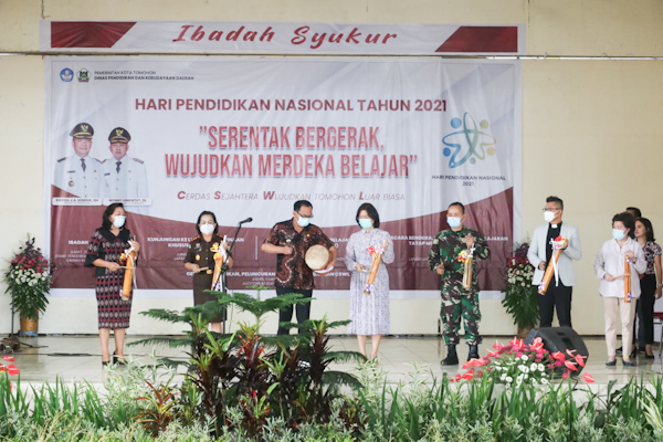 TOMOHON- SULUTNEWSTV.COM – Pembukaan rangkaian kegiatan Hari Pendidikan Nasional (Hardiknas) Tahun 2021 di Kota Tomohon. Kegiatan diawali dengan ibadah syukur yang dipimpin Ketua TP PKK Kota Tomohon Syamas Ny drg Jeand’arc Senduk-Karundeng, Bertempat di Anugerah Hall Tomohon, Jumat (30/4/21).