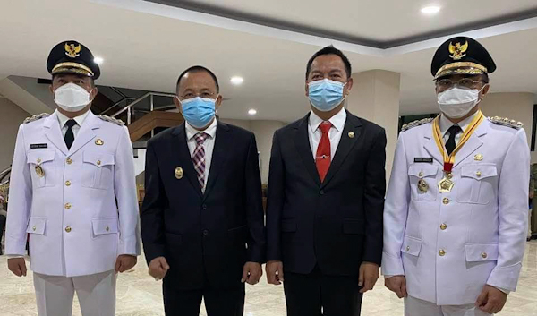 TOMOHON, SULUTNEWSTV.COM- Wali kota Tomohon Caroll Joram Azarias Senduk, S.H. dan Wakil Wali kota Tomohon Wenny Lumentut, S.E., menghadiri pelantikan Walikota Manado Andrei Angouw dan Wakil Walikota Manado dr. Richard Sualang di Aula Mapalus Kantor Gubernur Sulawesi Utara, Senin (10/4/21).