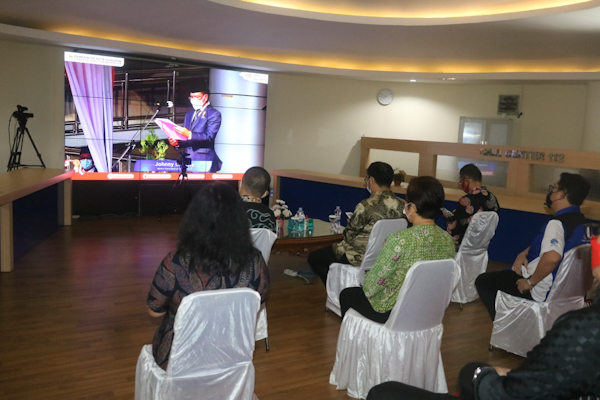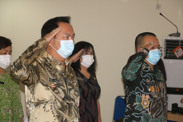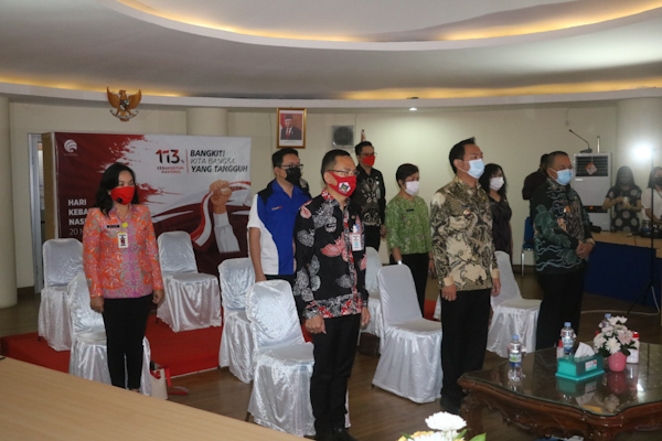 Tomohon – Wali kota Tomohon Caroll J.A. Senduk, SH bersama Wakil Wali kota Wenny Lumentut, SE mengikuti Upacara Bendera memperingat 113 Tahun Kebangkitan Nasional tahun 2021 yang dilaksanakan secara virtual oleh Kementerian Komunikasi dan Informatika RI dan disiarkan secara live streaming.