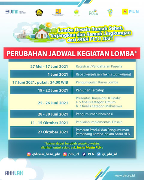 SULUTNEWSTV.com, JAKARTA – Batas waktu pendaftaran Lomba Desain Rumah Sehat, Terjangkau dan Ramah Lingkungan dari Material Fly Ash dan Bottom Ash (FABA) PLTU Batubara yang digelar PLN diperpanjang hingga 17 Juni 2021.