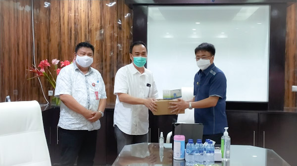 Dalam kesempatan itu pun, Walikota Manado Andrei Angouw langsung menyerahkan bantuan masker dan hand sanitizer kepada jurnalis yang diterima Steven Rondonuwu.