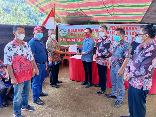 Tomohon – Pengukuhan tiga kelompok tani di Kelurahan Kayawu oleh Wali Kota Tomohon melalui Asisten Perekonomian dan Pembangunan SekretarisDaerah Kota Tomohon Ir.Enos Pontororing M.Si.sekaligus penandatangan berita acara pengukuhan dan penyerahan sertifikat, bertempat di Persawahan Kelurahan Kayawu Kecamatan Tomohon Utara, Kamis (24/6/21).