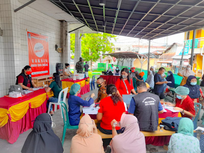 Terpantau, Pelaksanaan Vaksinasi yang di gencarkan oleh Pemerintah Kota Manado berlanjut lagi di Kelurahan Ketang Baru. lokasi kegiatan dihalaman Masjid Nurul Huda Ketang Baru. Jumat, (25/6).