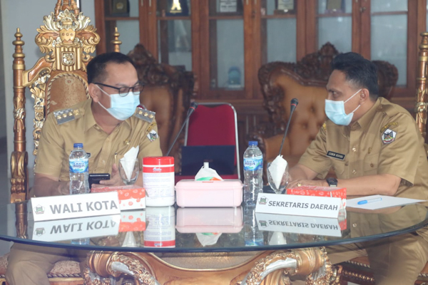 Tomohon – Didampingi Sekretaris Daerah Kota Tomohon, Edwin Roring SE, ME., Wali Kota Caroll Senduk SH, memimpin rapat penyusunan rancangan Kebijakan Umum Anggaran (KUA) dan Prioritas Plafon Anggaran Sementara (PPAS) tahun anggaran 2022, yang dilaksanakan di Aula Rumah Dinas Wali Kota Tomohon, Senin – Rabu (26-28/7/21).