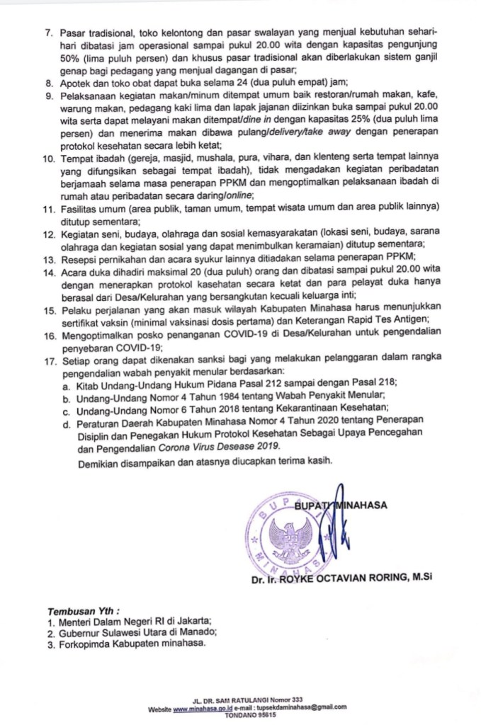 Berikut ini Surat Edaran yang ditandatangani oleh Bupati Minahasa DR Ir Royke Octavian Roring MSi tertanggal 26 Juli 2022.