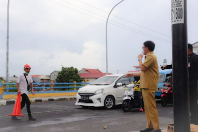 Selesai dari lokasi dilapangan Tikala Walikota berkendaraan menuju Jembatan Megawati untuk meninjau lampu jalan.