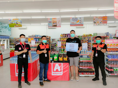 Pada kesempatan kali ini, Kamis (05/08), Alfamidi menyerahkan hadiah kepada pemenang hadiah utama, berupa uang tunai Rp10 juta. Pelanggan yang beruntung adalah Bapak Keysen Supit yang beralamat di Perumahan Griya Paniki Indah Manado.
