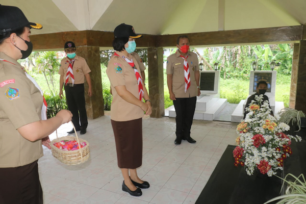 Tomohon – Dengan Tema “Berbakti Tanpa Henti” pramuka Kota Tomohon menggelar kegiatan ziarah ke makam mantan Bupati Minahasa Drs. Karel Lasut Senduk dan makam mantan Wali Kota Tomohon Drs. Boy Tangkawarow, di Kelurahan Kakaskasen, Jumat (13/8/21).