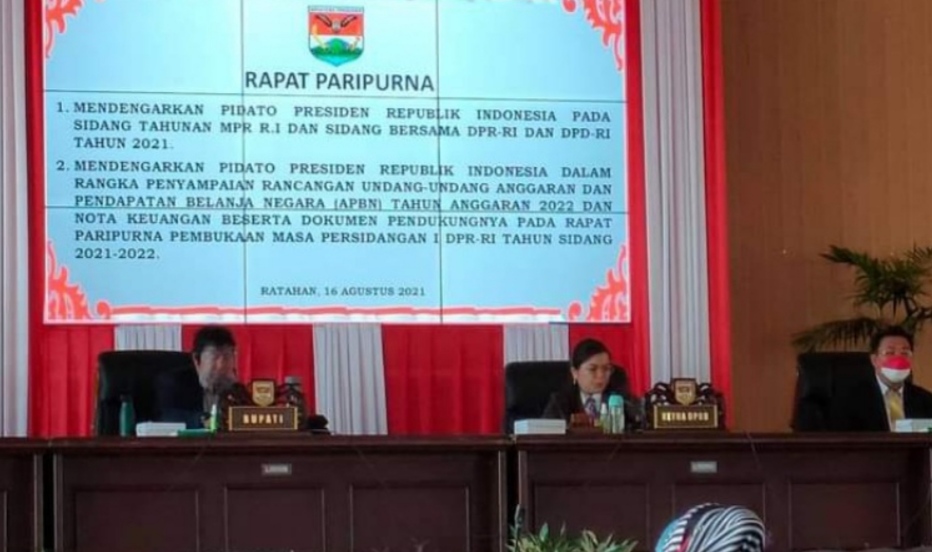 Sebelumnya Bupati dan Wakil Bupati serta Jajaran, para anggota legislatif, dan unsur Vertikal Forum Komunikasi Pimpinan Daerah (Forkopimda) mengikuti rapat paripurna dalam rangka mendengarkan Pidato kenegaraan oleh Presiden RI Joko Widodo secara virtual langsung dari Istana Negara. (Adve)
