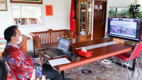 Tomohon – Presiden Republik Indonesia Joko Widodo membuka secara resmi Rapat Koordinasi Nasional Pengendalian Inflasi Tahun 2021 dari Istana Negara, yang diikuti oleh Walu Kota Tomohon Caroll Senduk SH, didampingi staf ahli Wali Kota Ir. Nova Rompas yang juga merangkap sebagai Plt. Kepala Bagian Perekonomian Sekda Kota Tomohon, yang dilaksanakan secara virtual di ruang kerja kediaman Wali Kota Tomohon, Rabu (25/8/21).