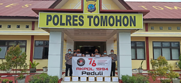 Tomohon – Sebagai wujud kepedulian terhadap masyarakat kurang mampu, jajaran Kepolisian Resor (Polres) Tomohon serta alumni Angkatan Polisi (Akpol ) 1994, salurkan bantuan sembako dan voucher belanja di Alfamart, Rabu (25/8/2021).