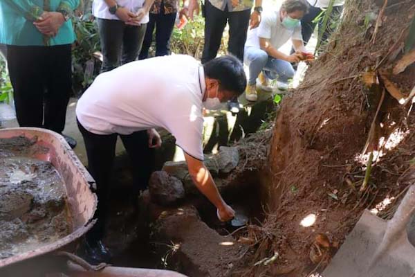 Acara selanjutnya adalah pencanangan program ini yang ditandai dengan pengecoran awal fondasi pelaksanaam proyek oleh Walikota.