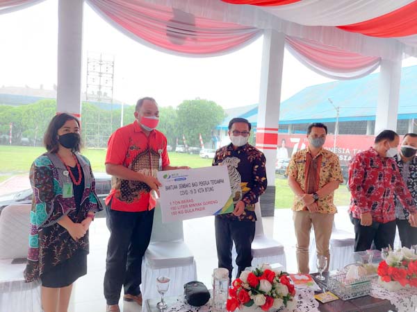 Walikota Bitung Ir. Maurits Mantiri, MM secara simbolis menyerahkan bantuan tersebut kepada perwakilan perusahan.