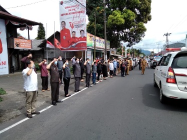 Wali Kota Tomohon Caroll J A Senduk SH didampingi Ketua TP PKK Kota Tomohon Ny drg Jeand’arc Senduk-Karundeng memberikan penghormatan terakhir buat Almarhum, saat mobil ambulance yang membawa peti jenasah berhenti sejenak di depan Kantot DPC PDIP di Kelurahan Kakaskasen, Senin (30/8/21).