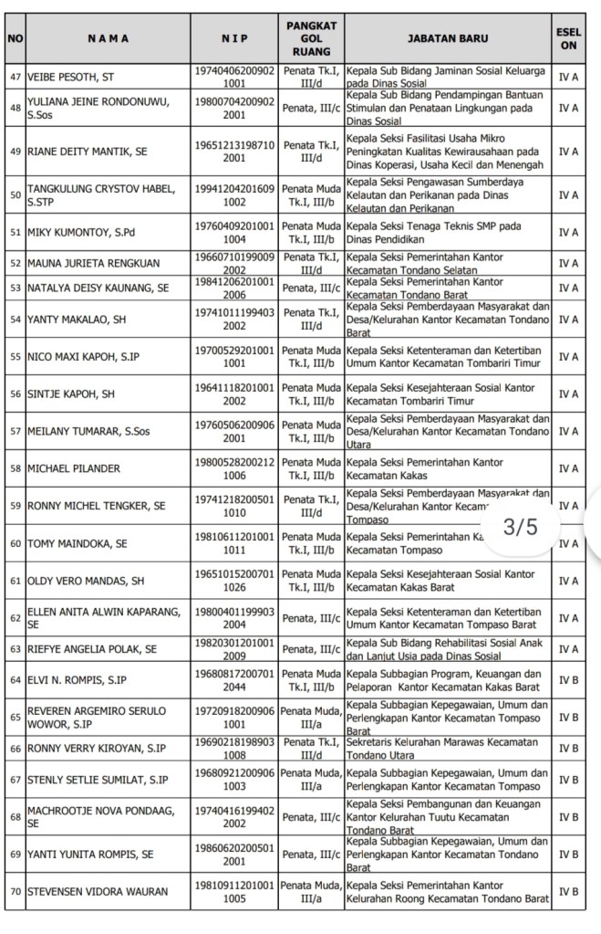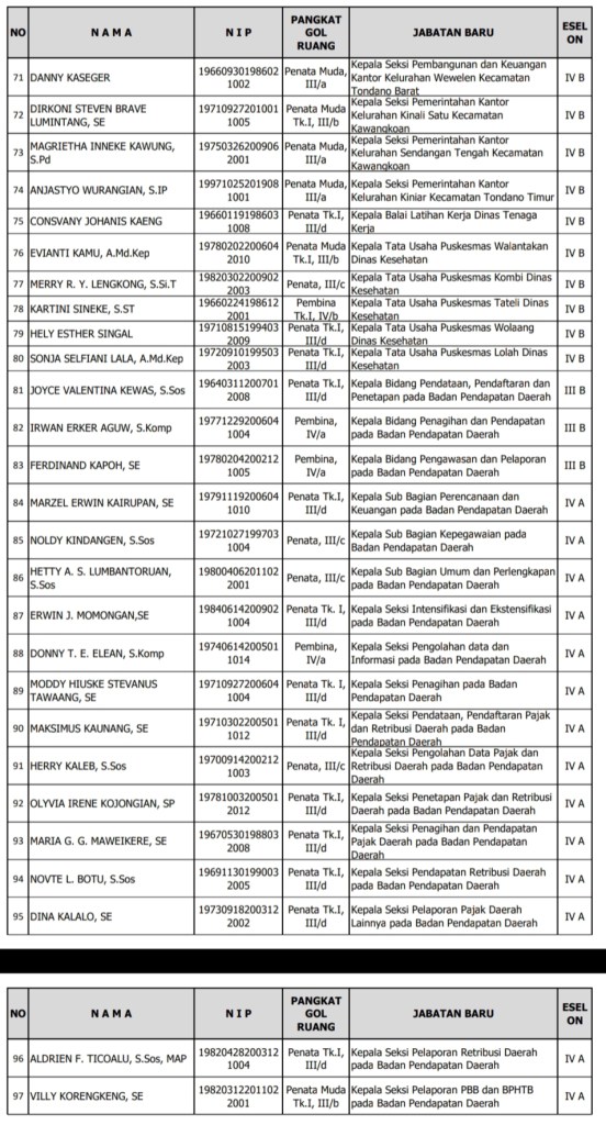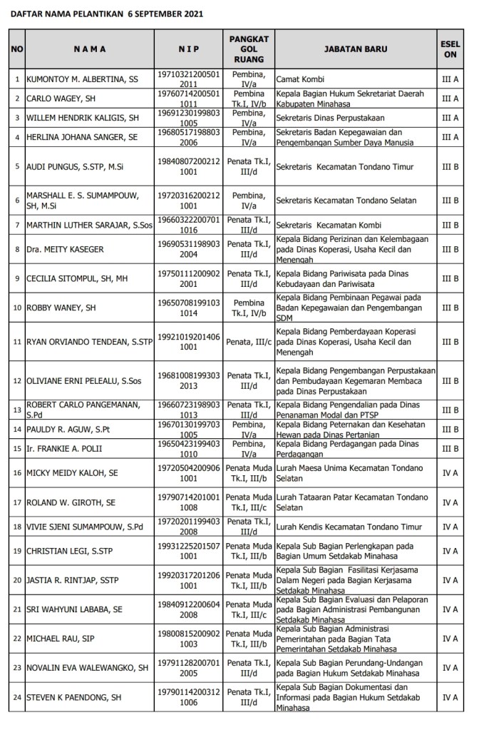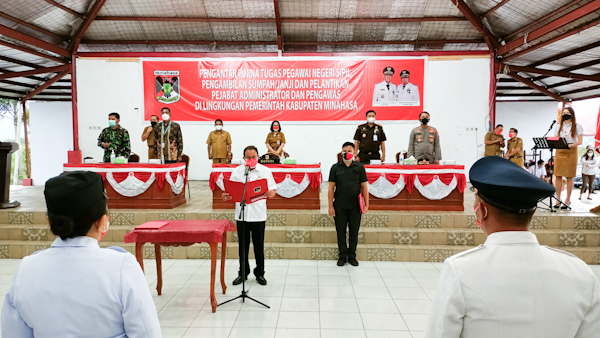Dengan melaksanakan protokol kesehatan, Pelantikan ini didahului dengan pembacaan Surat Keputusan Bupati Minahasa tentang Pengangkatan dan Pemindahan Aparatur Sipil Negara dalam Jabatan, Administrator dan Pengawas, oleh Kepala Badan Kepegawaian Dan Pengembangan SDM Minahasa Drs. Moudy Pangerapan, MAP.