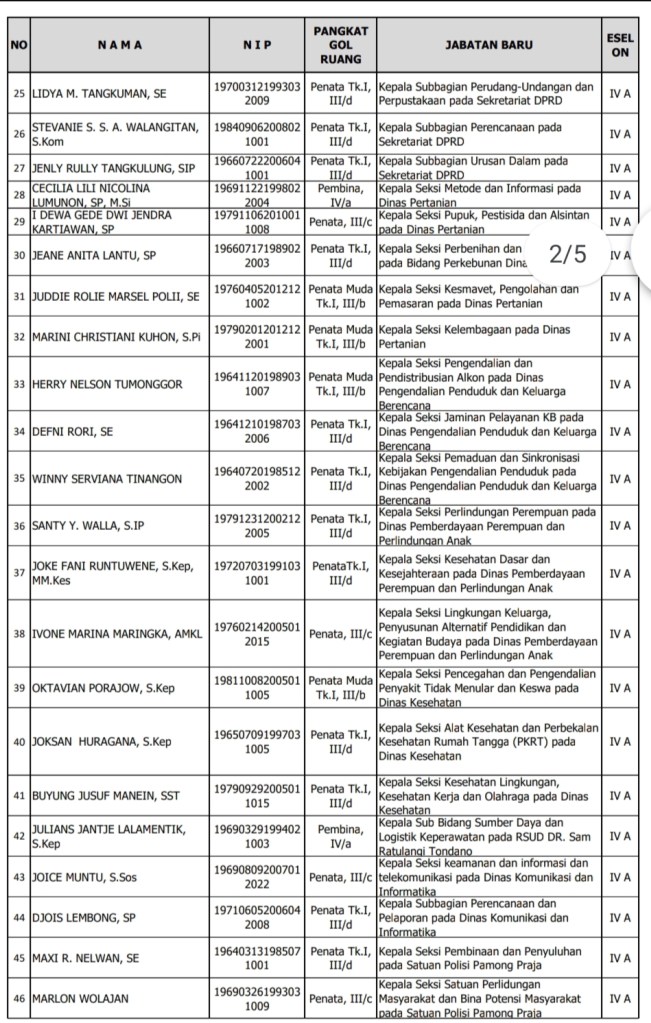 Pelantikan ini dirangkaikan pemberian surat keputusan kepada Drs. Riviva Maringka, MSi sebagai Pelaksana Tugas Asisten Pemerintahan dan Kesejahteraan Rakyat, Drs. Yori Gumansing sebagai Pelaksana Tugas Dinas Pangan, dan Plh. Dinas Pendidikan oleh Tommy Wuwungan.