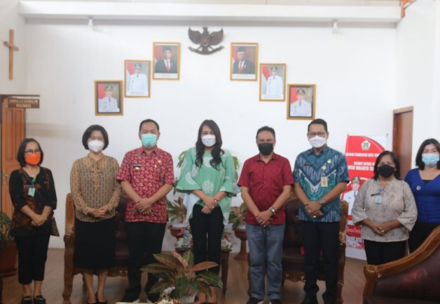 Tomohon – Bersama Wali Kota Tomohon Caroll J.A. Senduk, SH., Ketua TP-PKK Kota Tomohon drg. Jeand’arc Senduk-Karundeng menerima kunjungan audiensi Kepala Dinas Pemberdayaan Perempuan dan Perlindungan Anak Daerah Provinsi Sulawesi Utara dr. Kartika Devi Tanos, MARS.