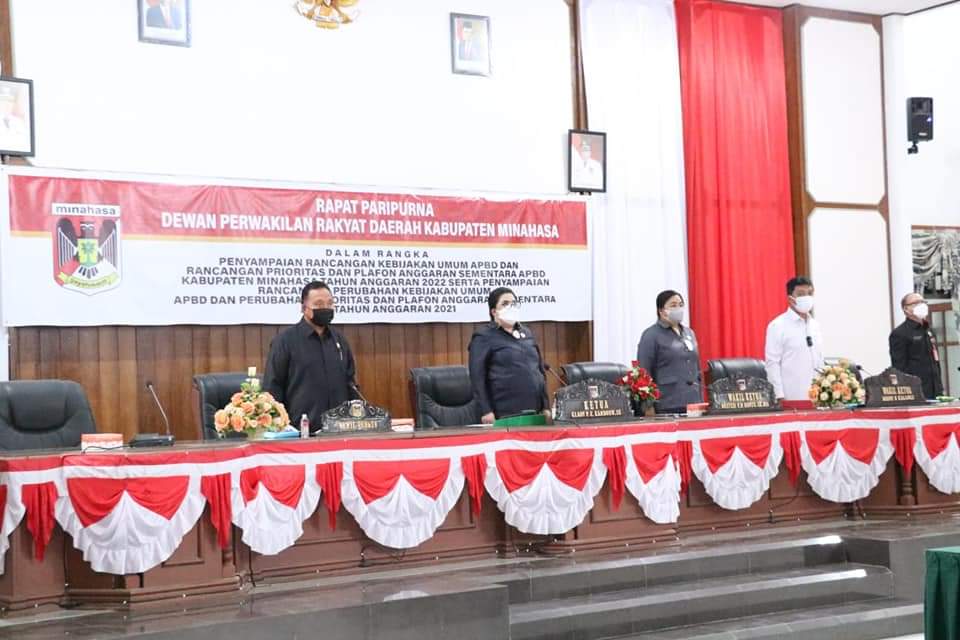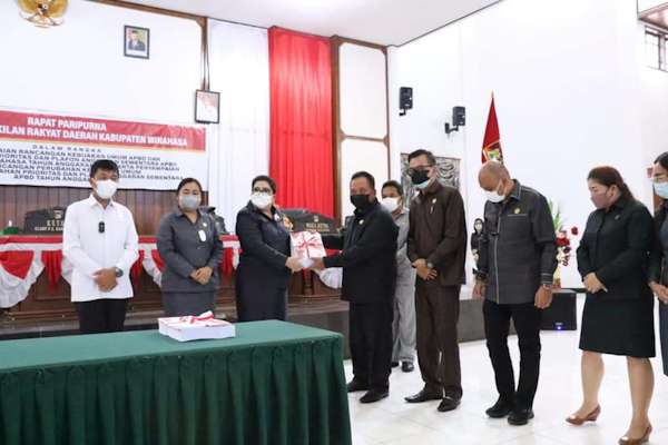 Minahasa – Pemerintah Kabupaten (Pemkab) Minahasa menyampaikan rancangan kebijakan umum APBD dan rancangan prioritas dan plafon anggaran sementara (KUA-PPAS) APBD Kabupaten Minahasa tahun anggaran 2022, serta rancangan perubahan kebijakan umum APBD dan perubahan prioritas dan plafon anggaran sementara APBD tahun anggaran 2021, ke Dewan Perwakilan Rakyat Daerah (DPRD) Kabupaten Minahasa.