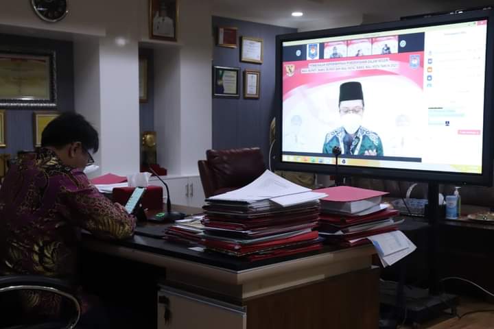 SULUTNEWSTV.com, MANADO – Walikota Manado Andrei Angouw (AA) terus belajar dan mengikuti giat pembekalan Kepemimpinan Pemerintahan Dalam Negeri secara virtual diruang Kerja Walikota, Senin(13/8).