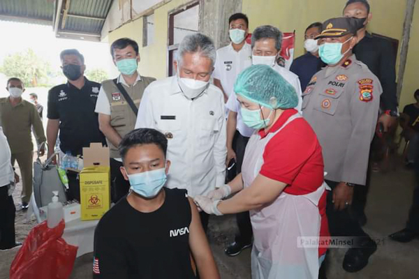 Vaksinasi yang di pusatkan di balai desa Ongkau satu, Kecamatan Sinonsayang, ini bertujuan untuk mempercepat penanganan Covid 19 di Minsel.