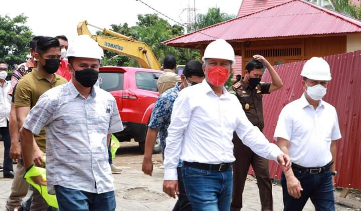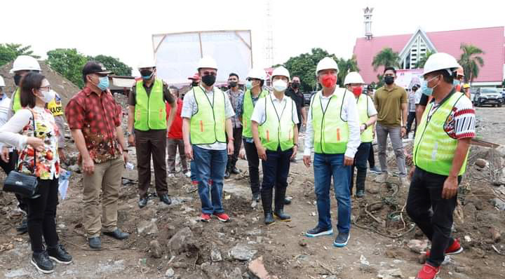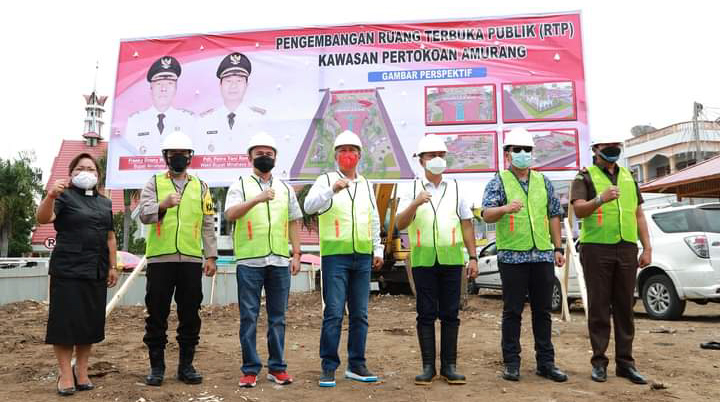 Bupati Minahasa Selatan Bpk. Franky Donny Wongkar, SH dan Wakil Bupati Minsel Pdt. Petra Yani Rembang, beserta Wakil Ketua DPRD Kab. Minsel Bpk. Stevanus Lumowa, SE menghadiri acara Peletakan Batu pertama Ruang Terbuka Hijau (RTH) di kawasan pertokoan Pusat kota Amurang, Sabtu (25/09/2021).