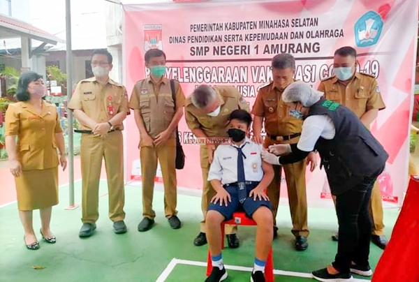 Kali ini giliran anak usia 12 – 17 tahun jadi perhatian Bupati FDW dan PYR melakukan pemantauan sekaligus memberikan Suport vaksinasi yang di prakarsai SMP Negeri I Amurang, bekerja sama dengan Dinas Kesehatan Minsel.