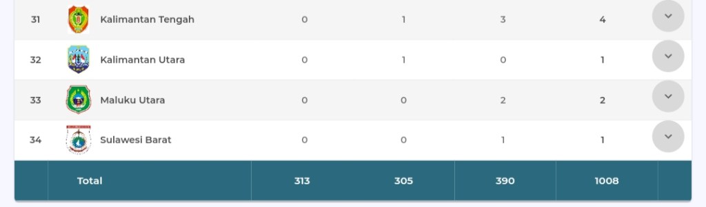 Sementara Sulawesi Utara berada di peringkat 20 dengan mengumpulkan 7 medali terdiri dari 2 emas 2 perak dan 3 perunggu.