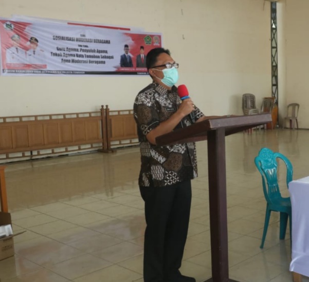 Tomohon – Sosialisasi moderasi beragama bagi guru agama, penyuluh agama, tokoh agama Kota Tomohon sebagai agen moderasi beragama di gelar, bertempat di Anugerah Hall, Kamis (21/10/21).
