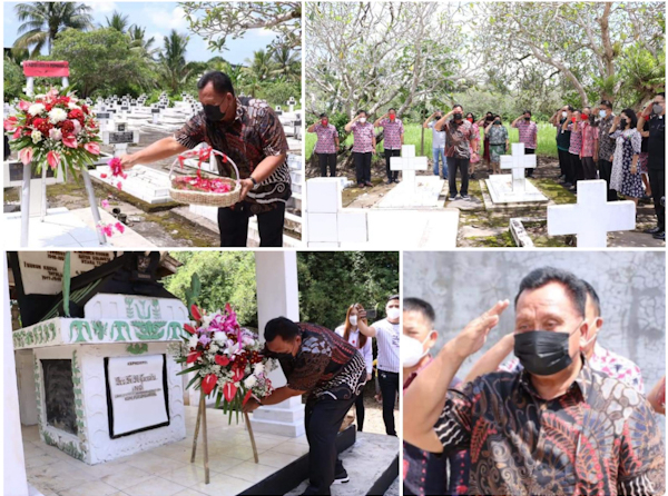 Minahasa – Dalam rangka memperingati hari jadi Kabupaten Minahasa ke-593, Wakil Bupati Minahasa Dr. (Hc) Robby Dondokambey, SSi, MM, Kamis (28/10) pagi, memimpin rombongan jajaran Pemerintah Kabupaten (Pemkab) Minahasa melakukan ziarah ke makam para mantan Bupati dan Wakli Bupati Minahasa.