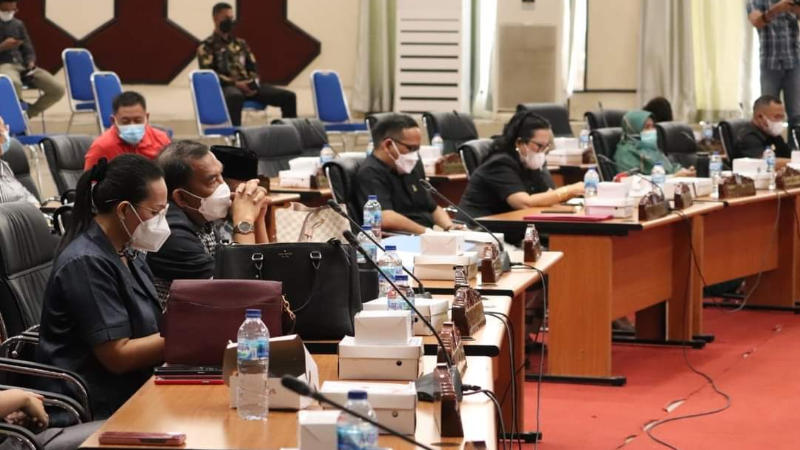 Bagi anggota DPRD, pejabat terkait yang tidak hadir secara fisik, mengikuti rapat ini secara Online/Virtual yang dilakukan dengan menggunakan teknokogi Video Conference melalui Aplikasi Zoom Cloud Meeting yang diakses pada Handphone/Laptop dari tempat masing-masing.(gabby)