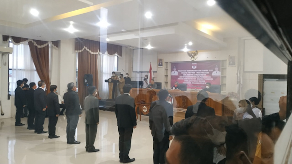 Pelantikan yang berlangsung di lantai empat kantor bupati Minsel, pengabilan sumpah da janji, di lakukan langsung Buapti Frangki Donni Wongkar SH.