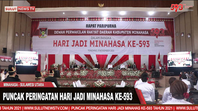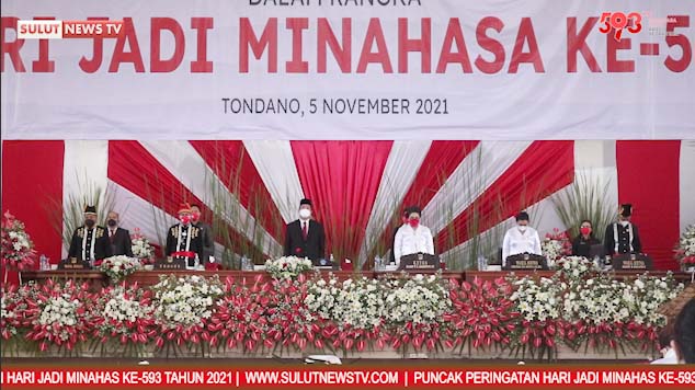 Minahasa – Puncak peringatan hari jadi Minahasa Ke-593 pada hari Jumat 5 November 2021 yang berlangsung di Gedung Wale Ne Tou Tondano berlangsung sukses