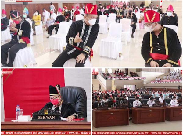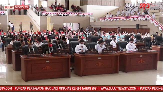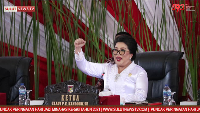 Puncak peringatan hari jadi Minahasa Ke-593 dikemas dalam Rapat Paripurna Dewan Perwakilan Rakyat Daerah yang dipimpin Ketua DPRD Glady Kandouw dihadiri Wakil Gubernur Sulawesi Utara Drs Steven O E Kandouw, serta Bupati Minahasa Dr Ir Royke Oktavian Roring MSi dan Wakil Bupati Robby Dondokambey SSi MM ini, dipimpin langsung Ketua DPRD Minahasa Glady P E Kandouw SE, didampingi Wakil Ketua Okstesi Pricilia Runtu SH MSi dan Wakil Ketua Denny R Kalangi, serta Sekretaris Dewan Drs Dolfie Kuron MBA.