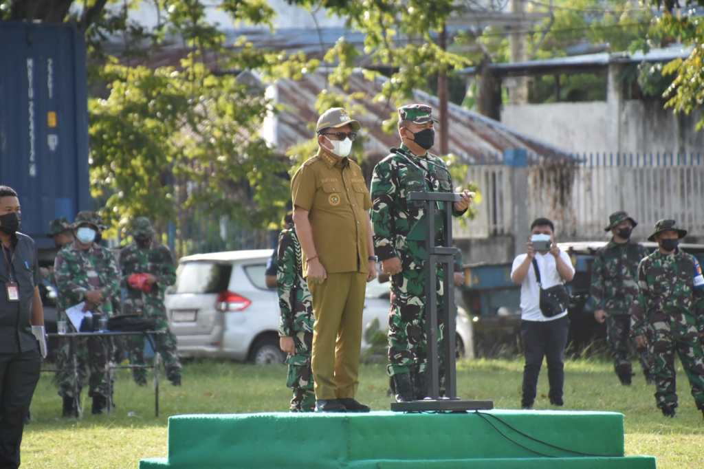 SULUTNEWSTV.com, BITUNG – Danrem 131/Satiago Brigjen TNI Prince Meyer Putong SH, MIP didampingi Walikota Bitung Ir. Maurits Mantiri, M.M membuka Latihan Penanggulangan Bencana Alam (Latgulbencal) T.A 2021, di Lapangan Sari Cakalang Jl. Sam Ratulangi Kelurahan Madidir Ure Kecamatan Madidi, Kota Bitung, Senin (8/11).