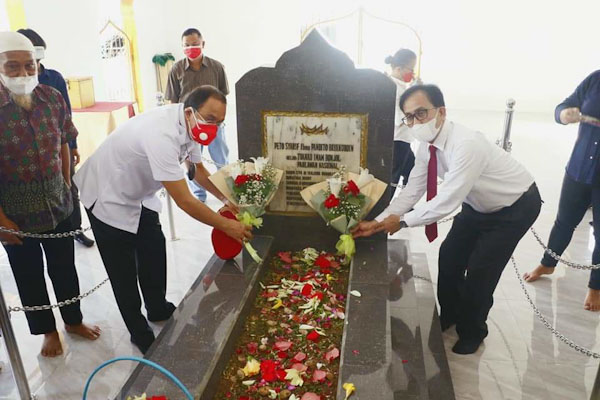Tondano – Bupati Minahasa, Dr. Ir. Royke Octavian Roring, M.Si menghadiri Peringatan Hari Pahlawan 2021 sekaligus Peresmian Program Sosial Bank Indonesia yakni Pemugaran Makam Pahlawan Nasional Tuanku Imam Bonjol dan Penandatanganan Perjanjian Kerja Sama Pembangunan Klaster Ketahanan Pangan Komoditas Cabai Rawit di Kabupaten Minahasa di Makam Pahlawan Nasional Tuanku Imam Bonjol, Desa Lotta Kecamatan Pineleng, Rabu (10/11)