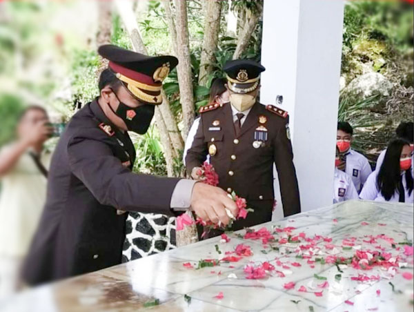 Minahasa – Kapolres Minahasa AKBP Tommy Bambang Souissa SIK, memimpin upacara ziarah peringatan Hari Pahlawan tingkat Kabupaten Minahasa, dilaksanakan di Taman Makam Pahlawan Nasional Sam Ratulangi, Selasa (10/11/2021)