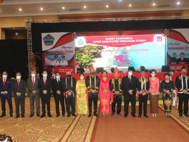 Tomohon – Peringatan Hari Ulang Tahun Kabupaten Minahasa Utara (Minut) dilaksanakan dengan mengadakan Rapat Paripurna DPRD Minut, bertempat di Sutan Raja Convention Minut, Sabtu (20/11/21).