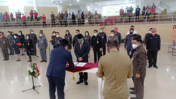 Dalam pelantikan yang dilaksanakan di aula Mapalus, Gubernur Olly Dondokambey dan Wagub Kandouw melantik 11 kepala dinas dan badan, serta 13 pejabat eselon 3.