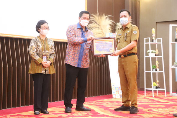 Saat bersamaan Walikota Tomohon menerima Piagam WTP 2020, dan Penghargaan 5 kali WTP berturut-turut.