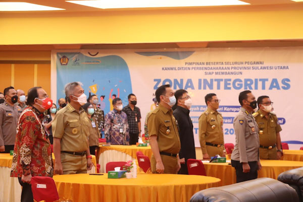 Hadir dan ikut dalam kegiatan penyerahan tersebut, para Bupati/Walikota di Provinsi Sulut bersama Lembaga lainnya. *Advertorial. (Novita)
