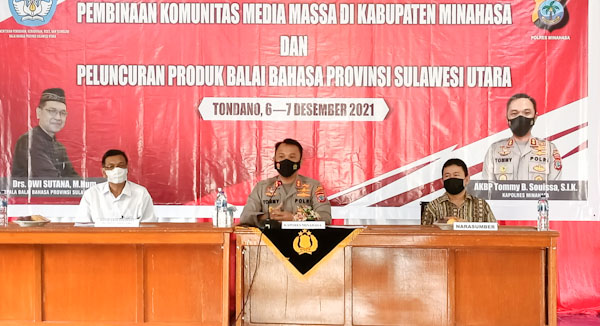 Tondano – Balai Bahasa Provinsi Sulawesi Utara menggelar Pembinaan komunitas media massa di Minahasa dan peluncuran produk balai bahasa Provinsi Sulawesi Utara di Aula Transatrisna Polres Minahasa, Senin (06/12/21).
