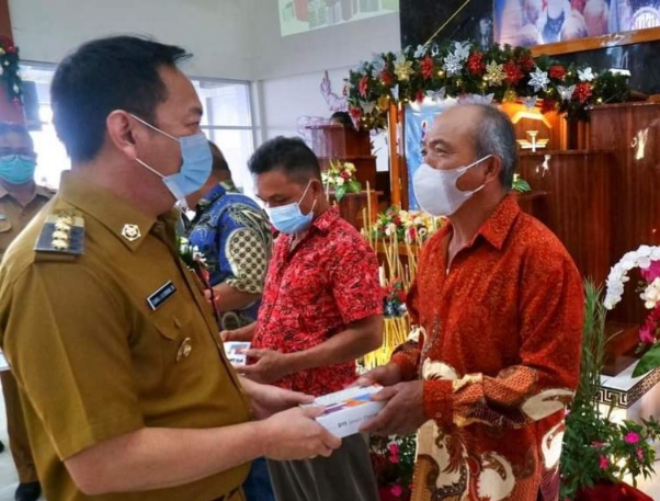 Penyerahan disaksikan Ketua FKUB Kota Tomohon Pdt. Senduk Roeroe, M.Th., Jajaran Pemerintah Kota Tomohon, Tokoh Agama dan Tokoh Masyarakat, Camat Tomohon Timur Wisje Oroh, S.Pd., MAP., Para Lurah Se- Kecamatan Tomohon Timur bersama Perangkat Kelurahan. (Novita)