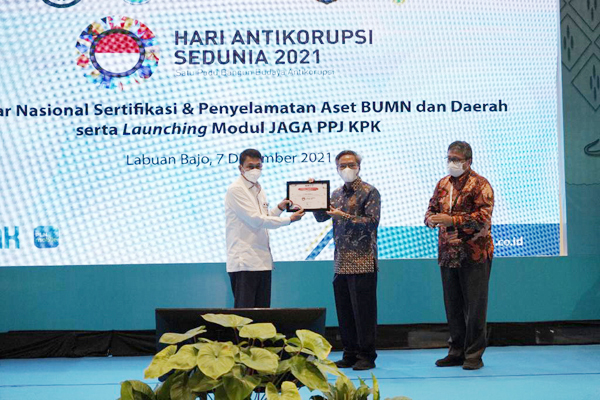 Penghargaan tersebut diserahkan oleh Pimpinan KPK Nawawi Pomolango kepada Direktur Niaga dan Manajemen Pelanggan PLN, Bob Saril dan disaksikan secara daring oleh Direktur Utama PLN Darmawan Prasodjo, dalam peringatan Hari Anti Korupsi Dunia yang diselenggarakan di Labuan Bajo, Nusa Tenggara Timur (NTT), Selasa (07/12).