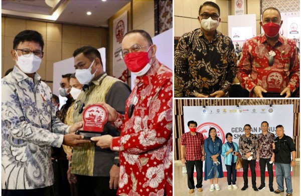 Jakarta – Bupati Minahasa Dr Ir Royke Octavian Roring MSi menerima Penghargaan (Awarding) dari Menteri Komunikasi dan Informatika RI Johnny Gerald Plate SE atas pencapaian Penyusunan Masterplan Smart City 2021 dalam kegiatan “Indonesia Smart City Conference” pada Selasa, 14 Desember 2021, bertempat di International Convention Exhibition (ICE) BSD City Tanggerang.